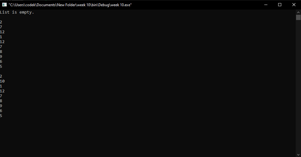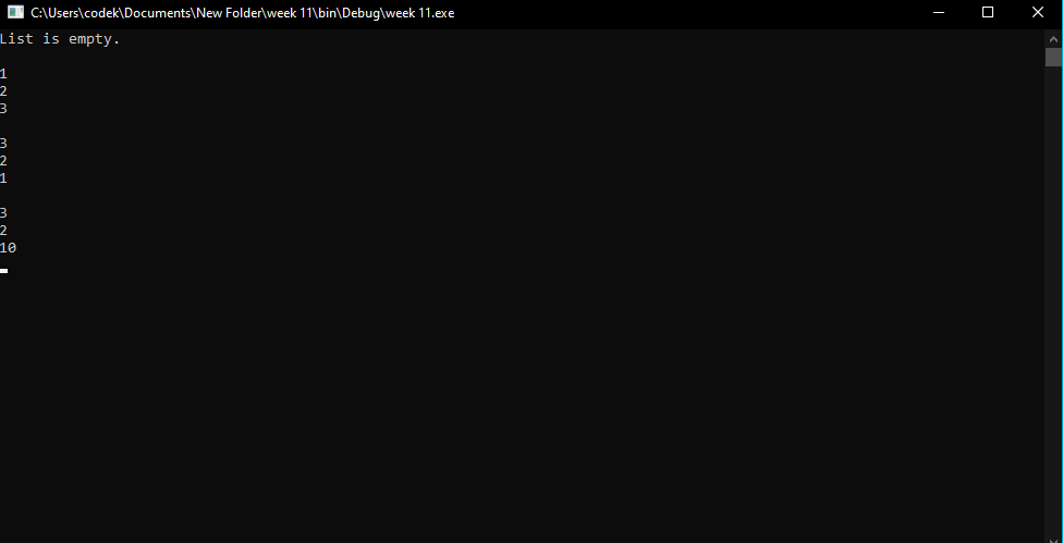 | Linked List Printout | Prints out a linked list using linked list class | |