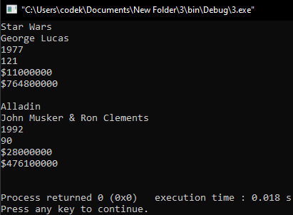 | Movie Structures | Print out movie data using structures | |