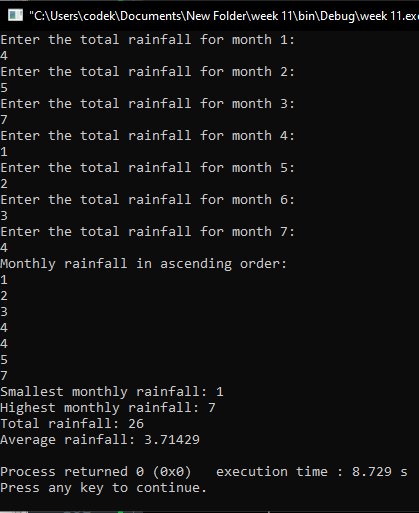 | Rainfall | Given rainfall each month put into a linked list and print out statistics and sort | |