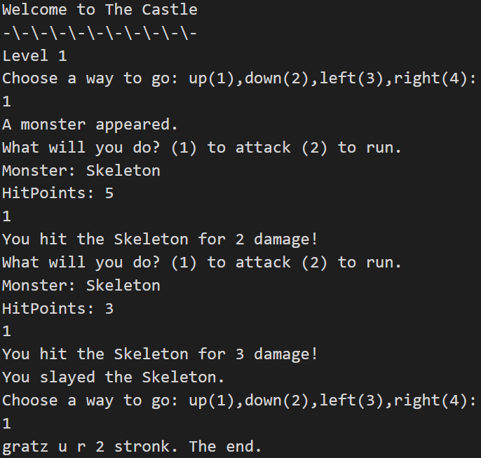| Text Adventure | Text adventure using external library | |
