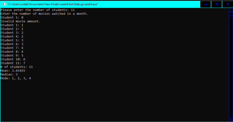 | Movie Statistics | Prints out statistics from user input about movies | |